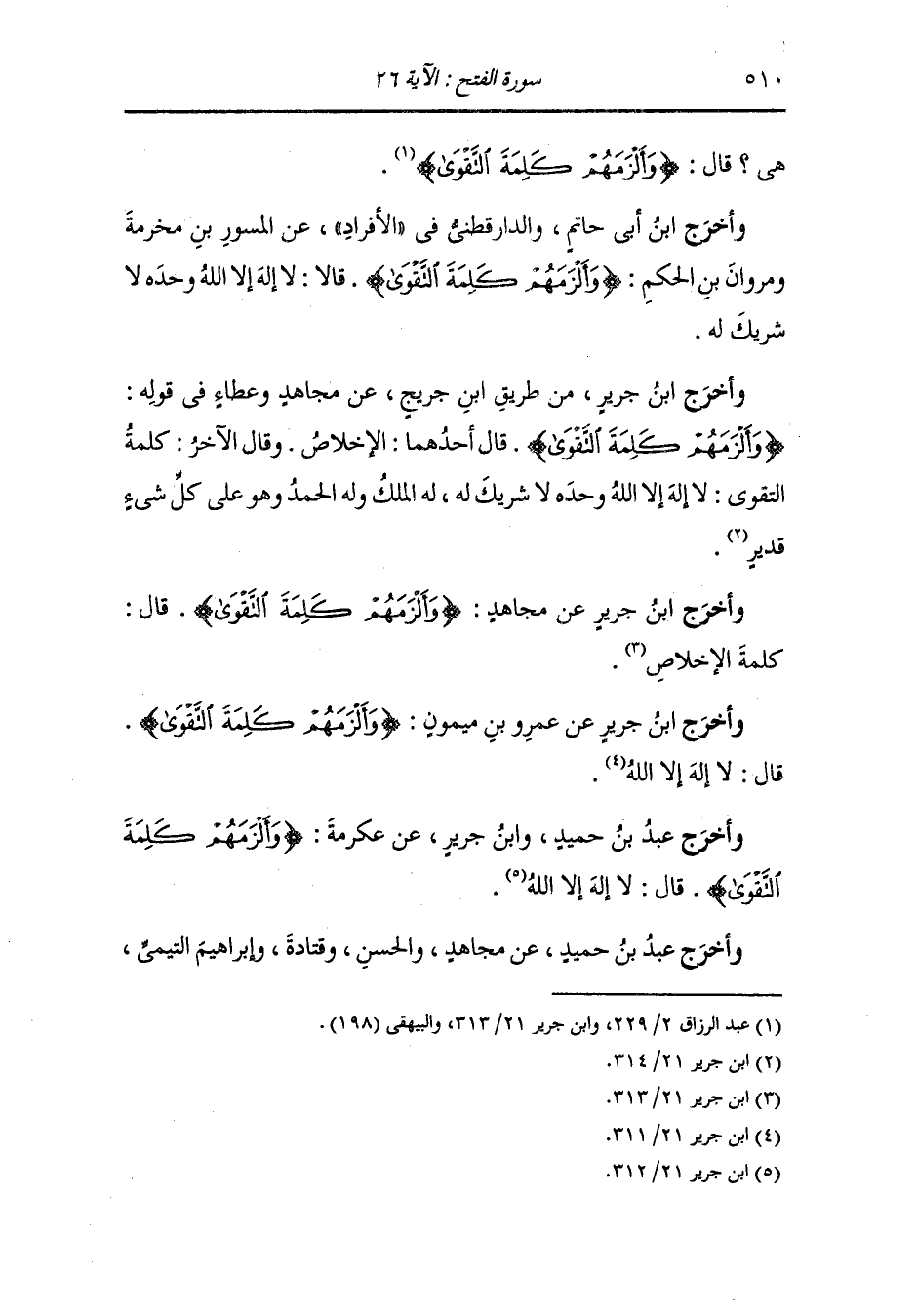 وأخرج عبد الرزاق ، وعَبد بن حُمَيد ، وَابن جَرِير ، وَابن المنذر ، وَابن أبي حاتم عن الزهري رضي الله عنه {وألزمهم كلمة التقوى} قال : بسم الله الرحمن الرحيم.