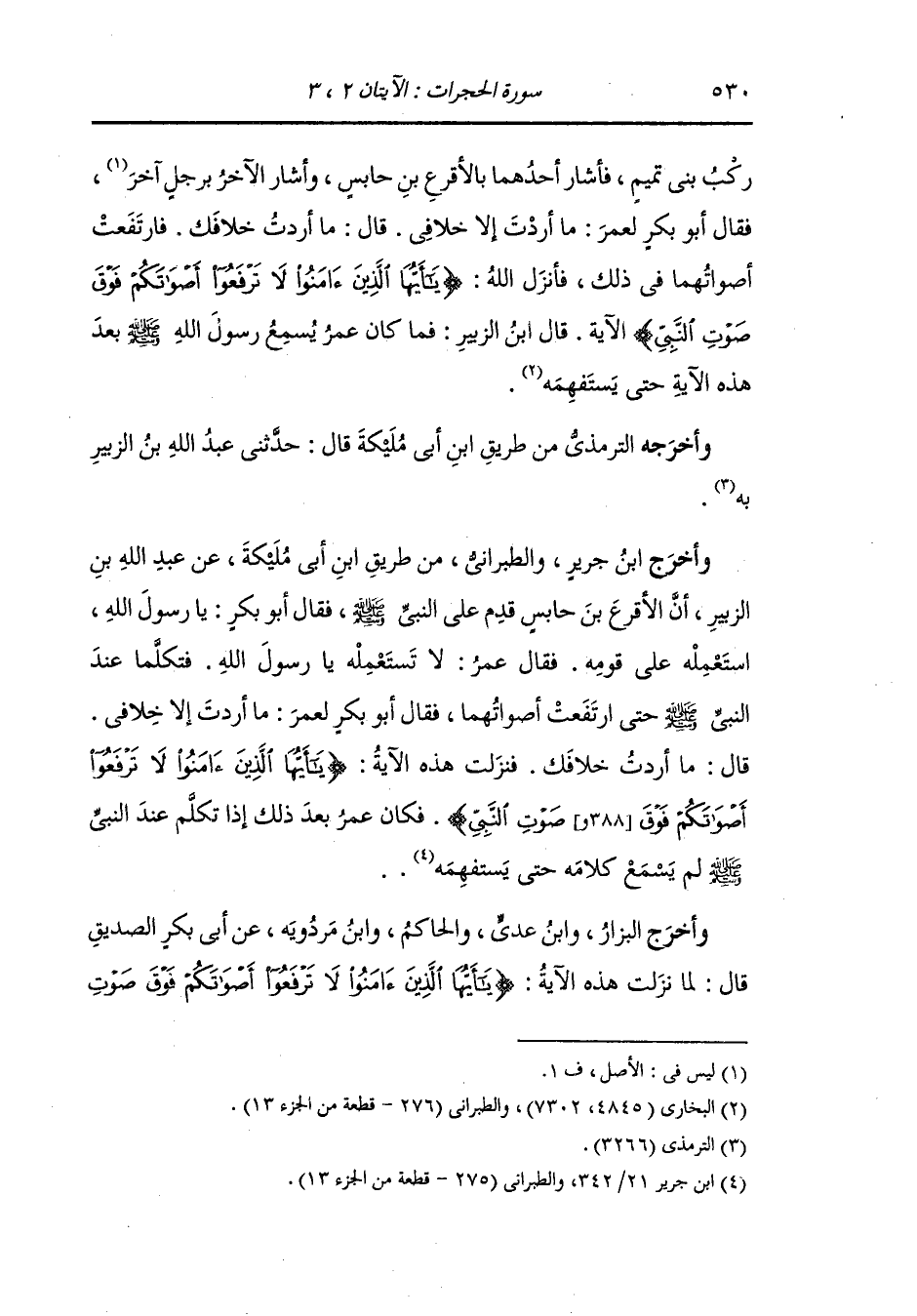 وأخرج ابن جرير والطبراني والحاكم وصححه ، وَابن مردويه عن محمد بن ثابت بن قيس بن شماس قال : لما نزلت هذه الآية {لا ترفعوا أصواتكم فوق صوت النَّبِيّ ولا تجهروا له بالقول} قعد ثابت رضي الله عنه في الطريق يبكي فمر به عاصم بن عدي بن العجلان فقال : ما يبكيك يا ثابت قال : هذه الآية أتخوف أن تكون نزلت في وأنا صيت رفيع الصوت فمضى عاصم بن عدي