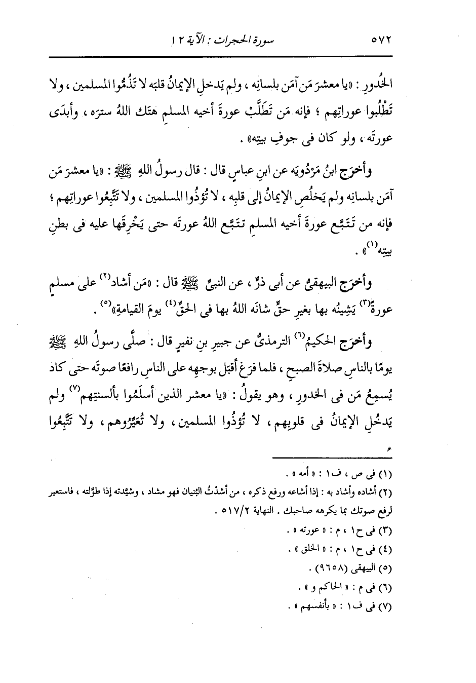 وأخرج عَبد بن حُمَيد والخرائطي في مساوى ء الأخلاق عن المطلب بن حنطب قال : قال رسول الله صلى الله عليه وسلم : إن الغيبة أن تذكر المرء بما فيه فقال إنما كنا نرى أن نذكره بما ليس فيه ذاك البهتان.
