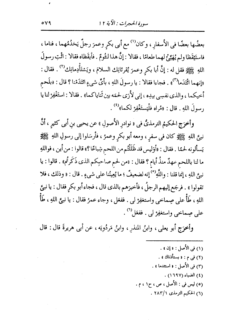وأخرج ابن جرير ، وَابن مردويه والبيهقي عن أبي هريرة رضي الله عنه أن رجلا قام من عند النَّبِيّ صلى الله عليه وسلم فرؤي في مقامه عجز فقال بعضهم : ما أعجز فلانا : فقال رسول الله صلى الله عليه وسلم : قد أكلتم الرجل واغتبتموه.