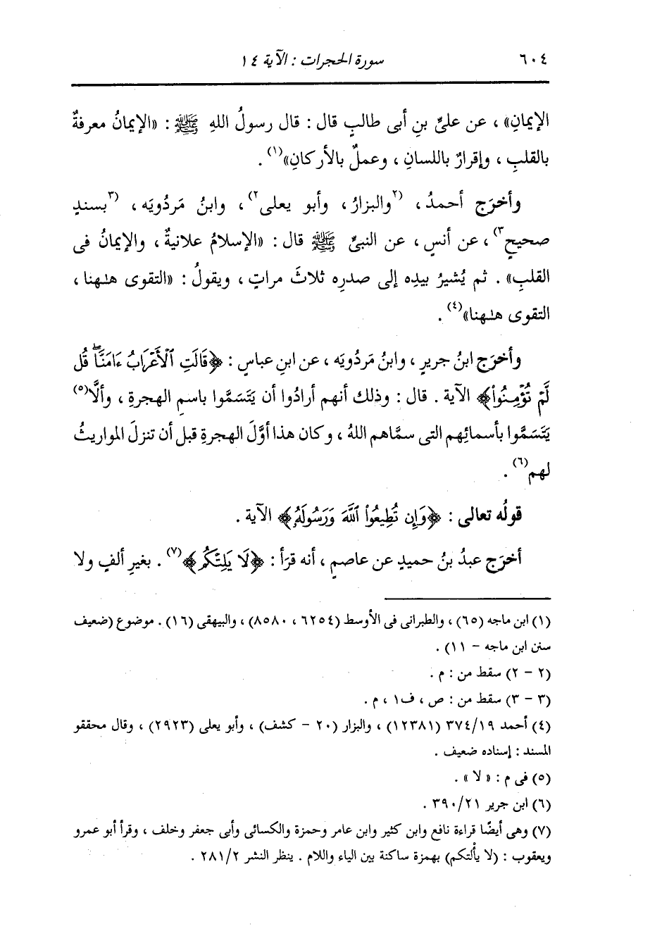 وأخرج عَبد بن حُمَيد ، وَابن المنذر عن عبد الله بن عثمان بن خثيم قال : سألت عكرمة عن {والنخل باسقات} فقلت : ما بسوقها قال : بسوقها طلعها ألم تر أنه يقال للشاة إذا حان ولادها بسقت قال : فرجعت إلى سعيد بن جبير فقلت له : فقال : كذب بسوقها طولها في كلام العرب ألم تر أن الله قال : {والنخل باسقات} ثم قال {طلع نضيد}.