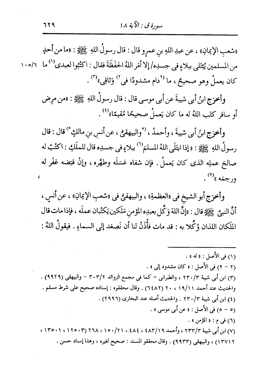 وأخرج البيهقي في شعب الإيمان عن سعيد بن سنان في قوله {لكل أواب حفيظ} قال : حفظ ذنوبه فتاب منها ذنبا ذنبا.