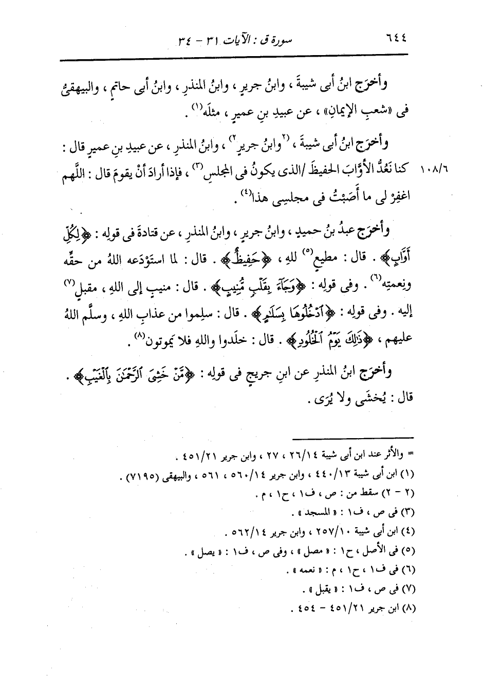وأخرج ابن جرير عن مجاهد قال {وأدبار السجود} الركعتان بعد المغرب.