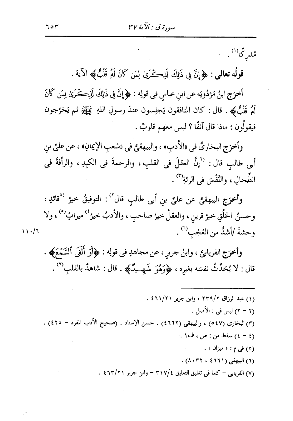وَأخرَج ابن جرير ، وَابن أبي حاتم وأبو الشيخ عن ابن ابن عمرو في قوله: (والسماء ذات الحبك) قال:هي السماء السابعة.وأخرج أبو الشيخ عن أبي صالح: (والسماء ذات الحبك) قال:ذات الخلق الشديد..