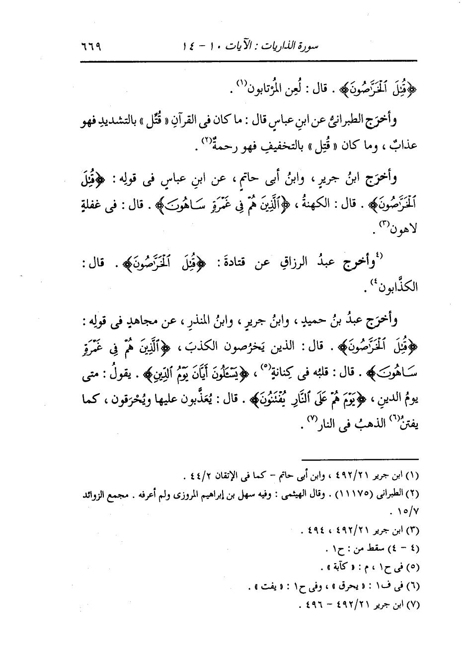 وأخرج ابن جرير عن ابن عباس رضي الله عنهما في قوله {وفي عاد إذ أرسلنا عليهم الريح العقيم} قال : الريح العقيم التي لا تلقح الشجر ولا تثير السحاب وفي قوله {إلا جعلته كالرميم} قال : كالشيء الهالك.