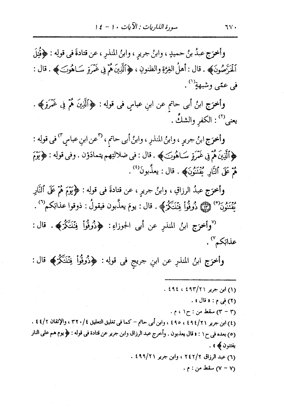 وأخرج عبد الرزاق ، وَابن جَرِير عن قتادة رضي الله عنه قال : {الريح العقيم} التي لا تنبت وفي قوله {إلا جعلته كالرميم} قال : كرميم الشجر.