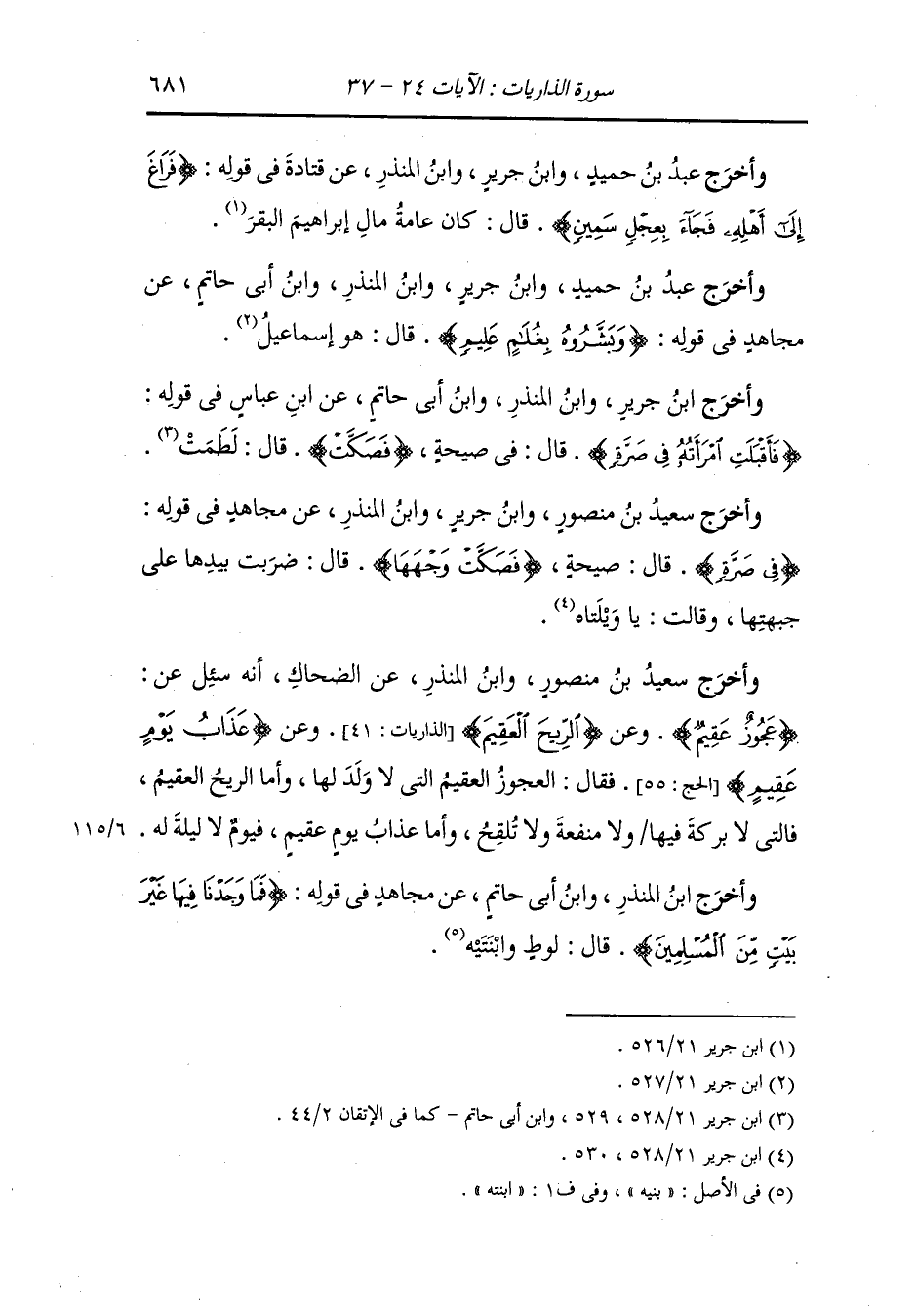 وأخرج ابن جرير عن ابن عباس رضي الله عنهما في قوله {والبيت المعمور} قال : هو بيت حذاء العرش يعمره الملائكة يصلي فيه كل يوم سبعون ألفا من الملائكة ثم لا يعودون إليه.