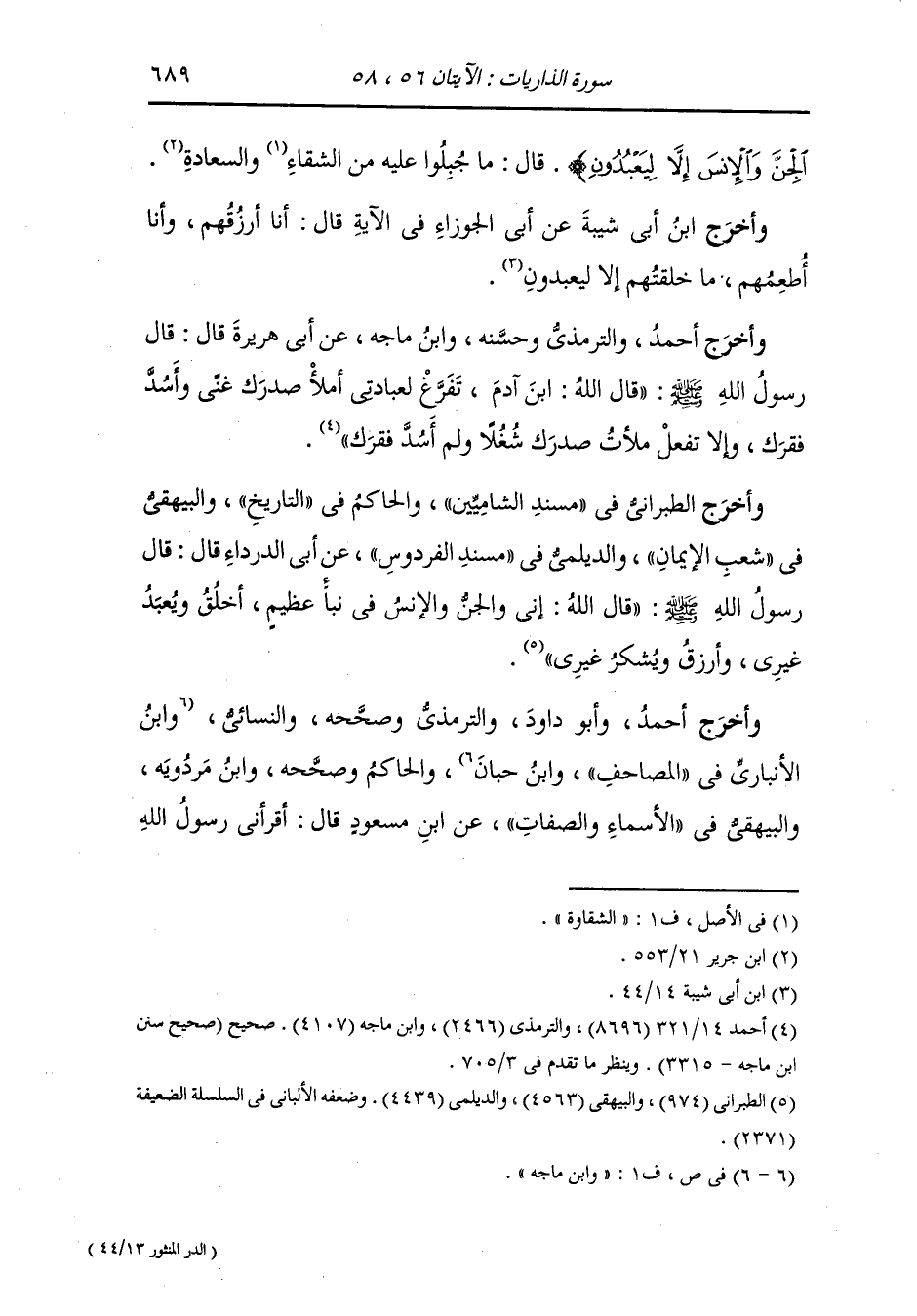 والحاكم والبيهقي في "سُنَنِه" عن ابن عباس قال : إن الله ليرفع ذرية المؤمن معه في الجنة وإن كانوا دونه في العمل لتقر بهم عينه ثم قرأ {والذين آمنوا واتبعتهم ذريتهم} الآية.