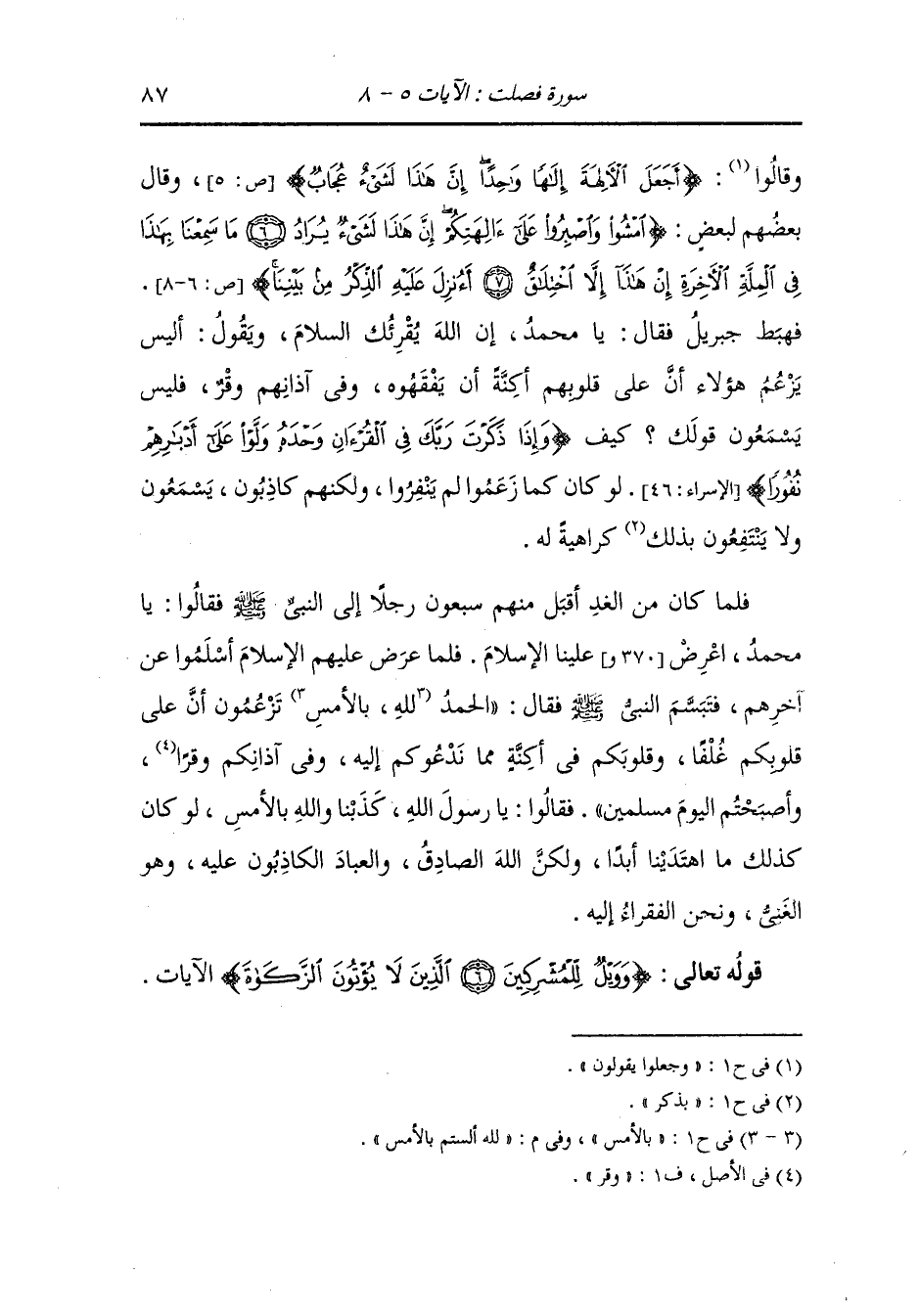وقالوا (أجعل الآلهة إلها واحدا إن هذا لشيء عجاب) (ص 5) وقال بعضهم لبعض (امشوا واصبروا على آلهتكم إن هذا لشيء يراد ما سمعنا بهذا في الملة الآخرة إن هذا إلا اختلاق أأنزل عليه الذكر من بيننا) (ص 7).