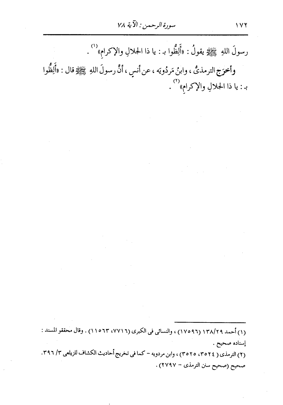 وأخرج الترمذي ، وَابن مردويه عن أنس أن رسول الله صلى الله عليه وسلم قال : ألظوا بيا ذا الجلال والإكرام ، | 8