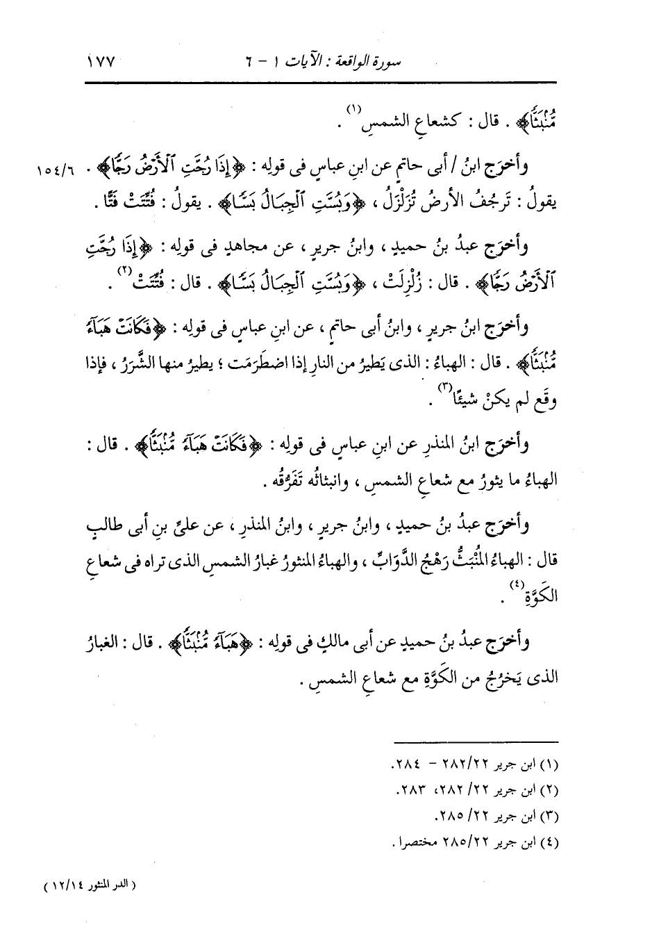 وأخرج عَبد بن حُمَيد عن الحسن في قوله : {هباء منبثا} قال : هو الذي تراه في الشمس إذا دخلت من الكوة إلى البيت.