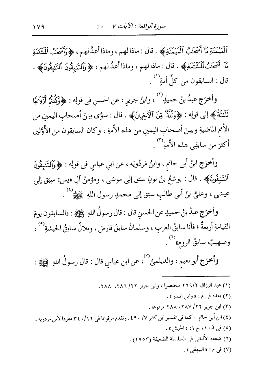 وأخرج عَبد بن حُمَيد ، وَابن المنذر عن عثمان بن أبي سودة مولى عبادة بن الصامت قال : بلغنا في هذه الآية {والسابقون السابقون} أنهم السابقون إلى المساجد والخروج في سبيل الله.