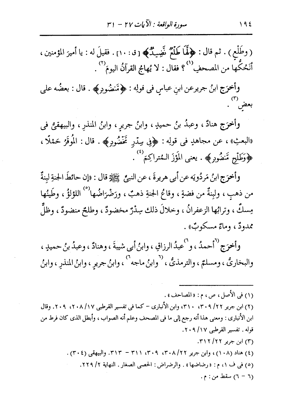 وأخرج عبد الرزاق ، وَابن أبي شيبة وهناد ، وعَبد بن حُمَيد والبخاري ومسلم والترمذي ، وَابن جَرِير ، وَابن المنذر وابن