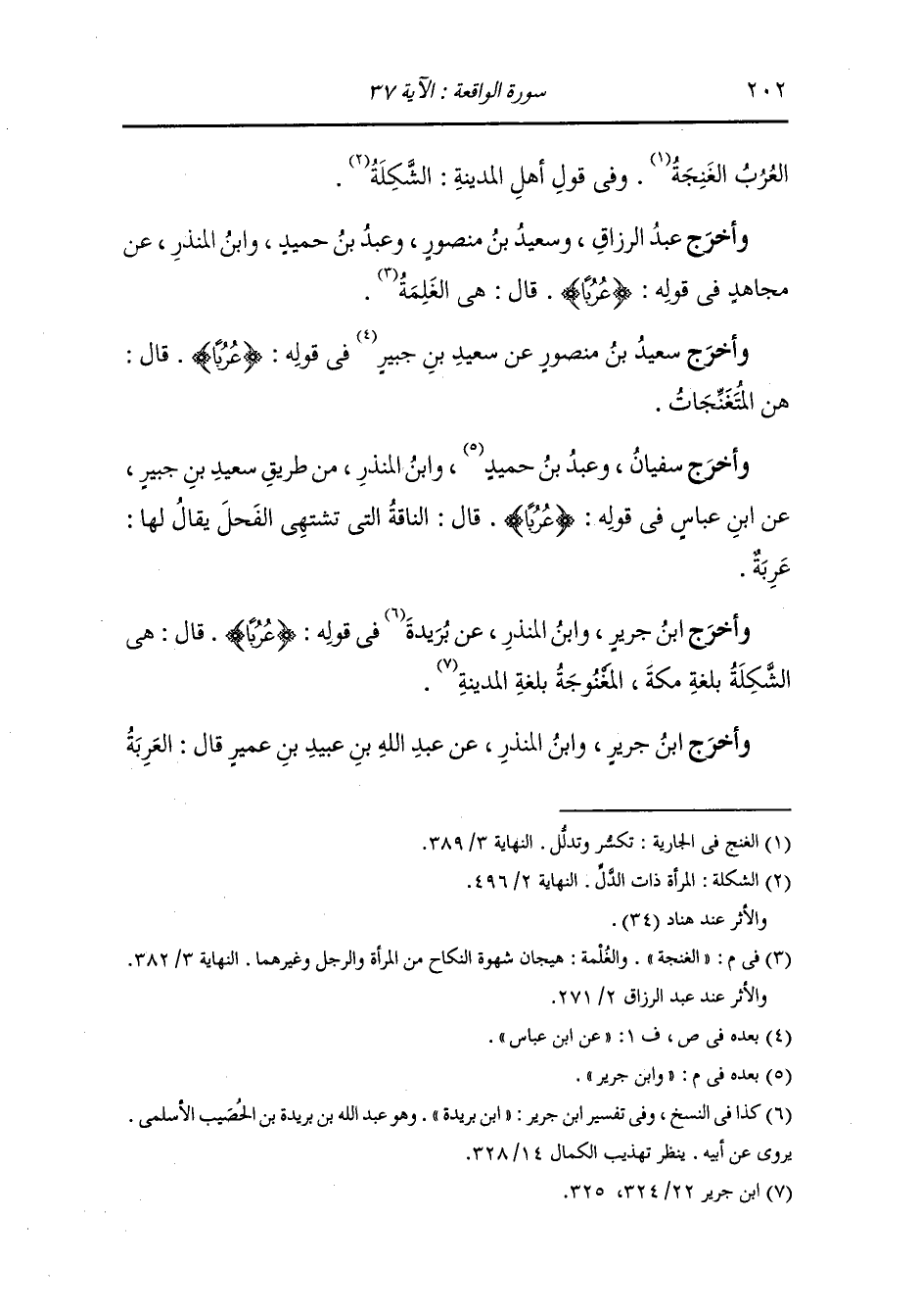 وأخرج سعيد بن منصور عن سعيد بن جبير في قوله : {عربا} قال : هن المتغنجات.