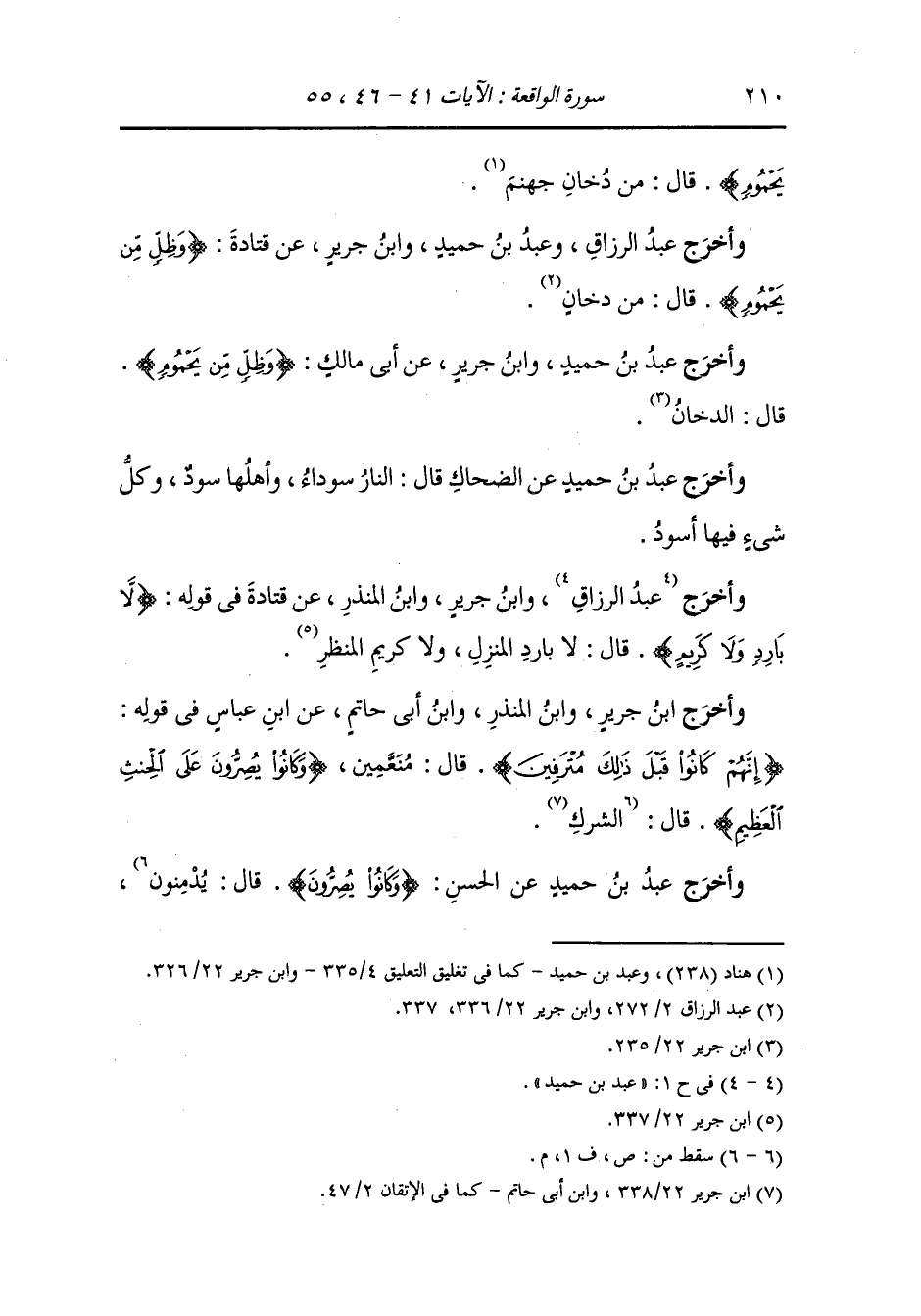 وأخرج ابن جرير ، وَابن المنذر ، وَابن أبي حاتم عن ان عباس رضي الله عنهما في قوله : {إنهم كانوا قبل ذلك مترفين} قال : منعمين {وكانوا يصرون على الحنث العظيم} قال : الشرك..