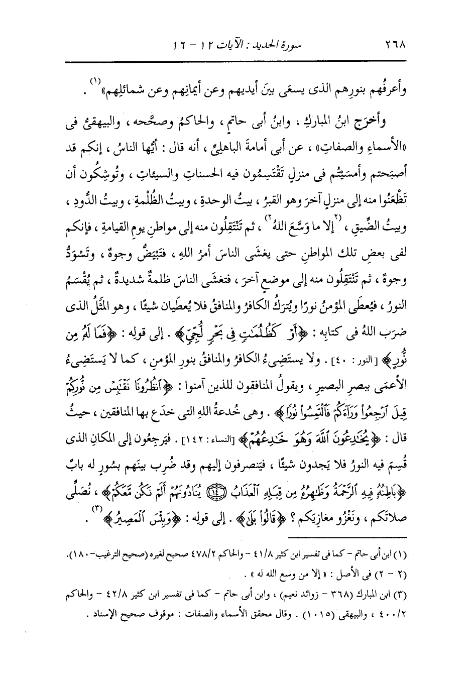 وأخرج ابن بي حاتم من وجه آخر عن أبي أمامة قال : تبعث ظلمة يوم القيامة فما من مؤمن ولا كافر يرى كفه حتى يبعث الله بالنور إلى المؤمنين بقدر أعمالهم فيتبعهم المنافقون فيقولون : {انظرونا نقتبس من نوركم}.