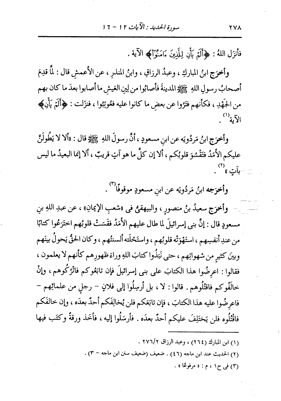 وأخرج ابن المنذر عن ابن عمر رضي الله عنه أنه كان إذا تلا هذه الآية {ألم يأن للذين آمنوا أن تخشع قلوبهم لذكر الله} ثم قال : بلى يا رب بلى يا رب.