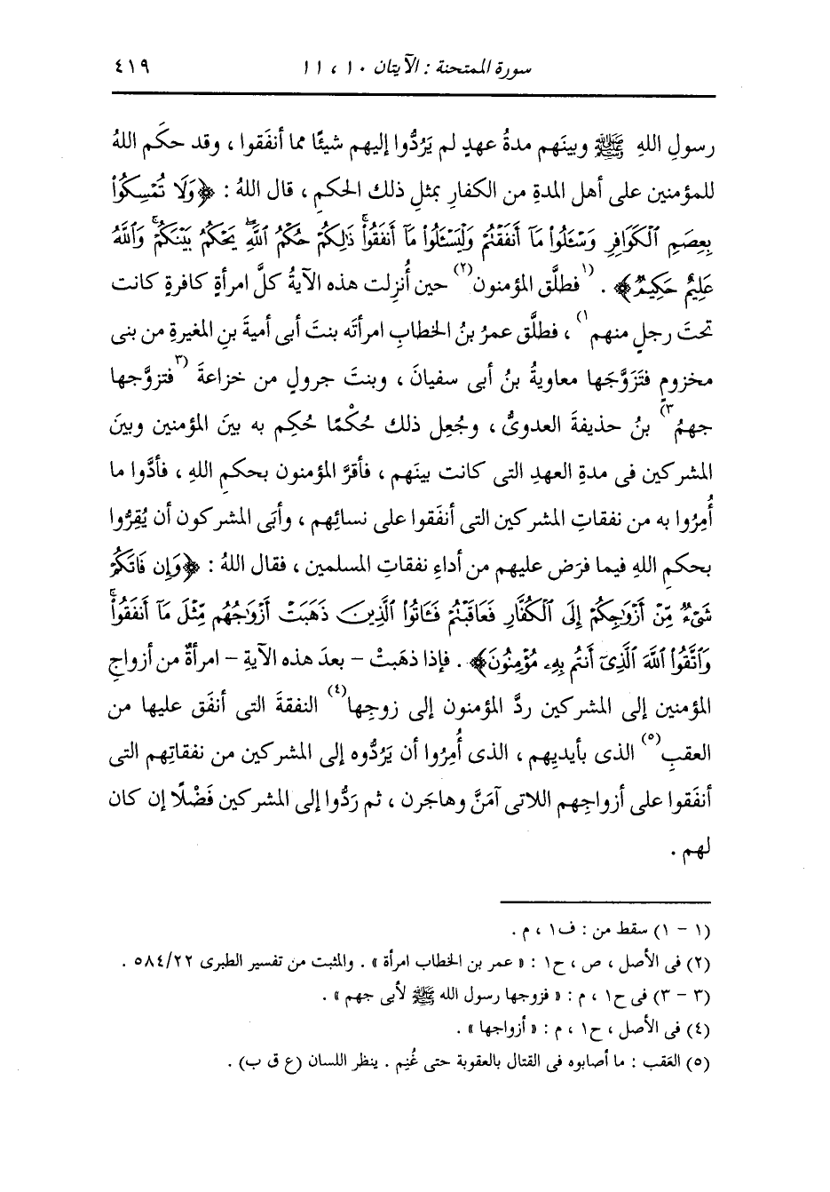 وأخرج ابن أبي شيبة ، وعَبد بن حُمَيد عن مجاهد رضي الله عنه {ولا تمسكوا بعصم الكوافر} قال : الرجل تلحق امرأته بدار الحرب فلا يعتد بها من نسائه.