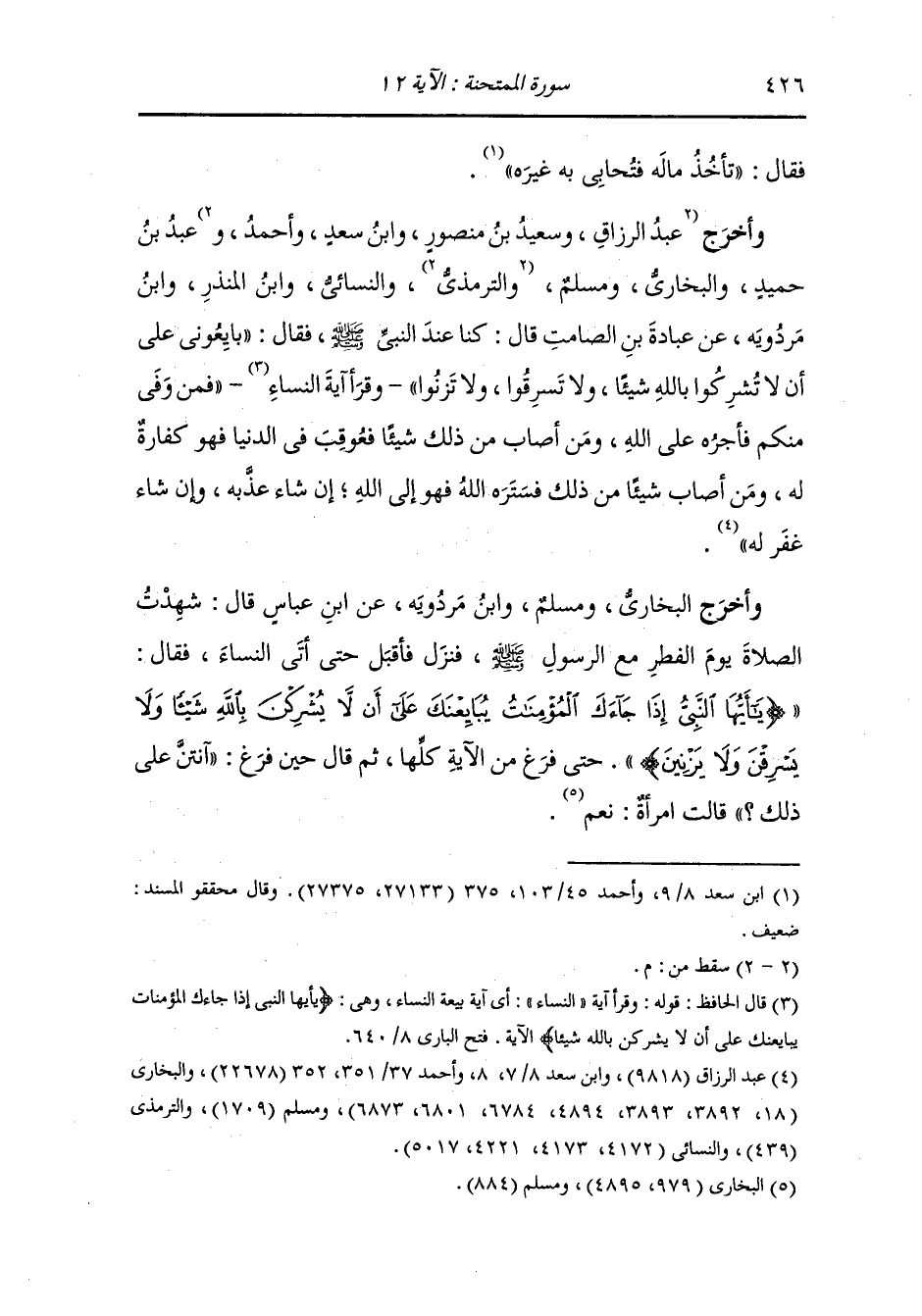 وأخرج ابن أبي حاتم عن مقاتل رضي الله عنه قال : أنزلت هذه الآية يوم الفتح فبايع رسول الله صلى الله عليه وسلم الرجال على الصفا وعمر يبايع النساء تحتها عن رسول الله صلى الله عليه وسلم.
