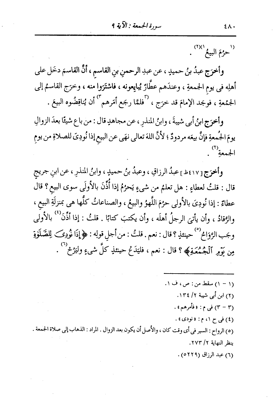 وأخرج ابن المنذر عن سعيد بن جبير قال : إذا انصرفت يوم الجمعة فأخرج إلى باب المسجد فساوم بالشيء وإن لم تشتره.