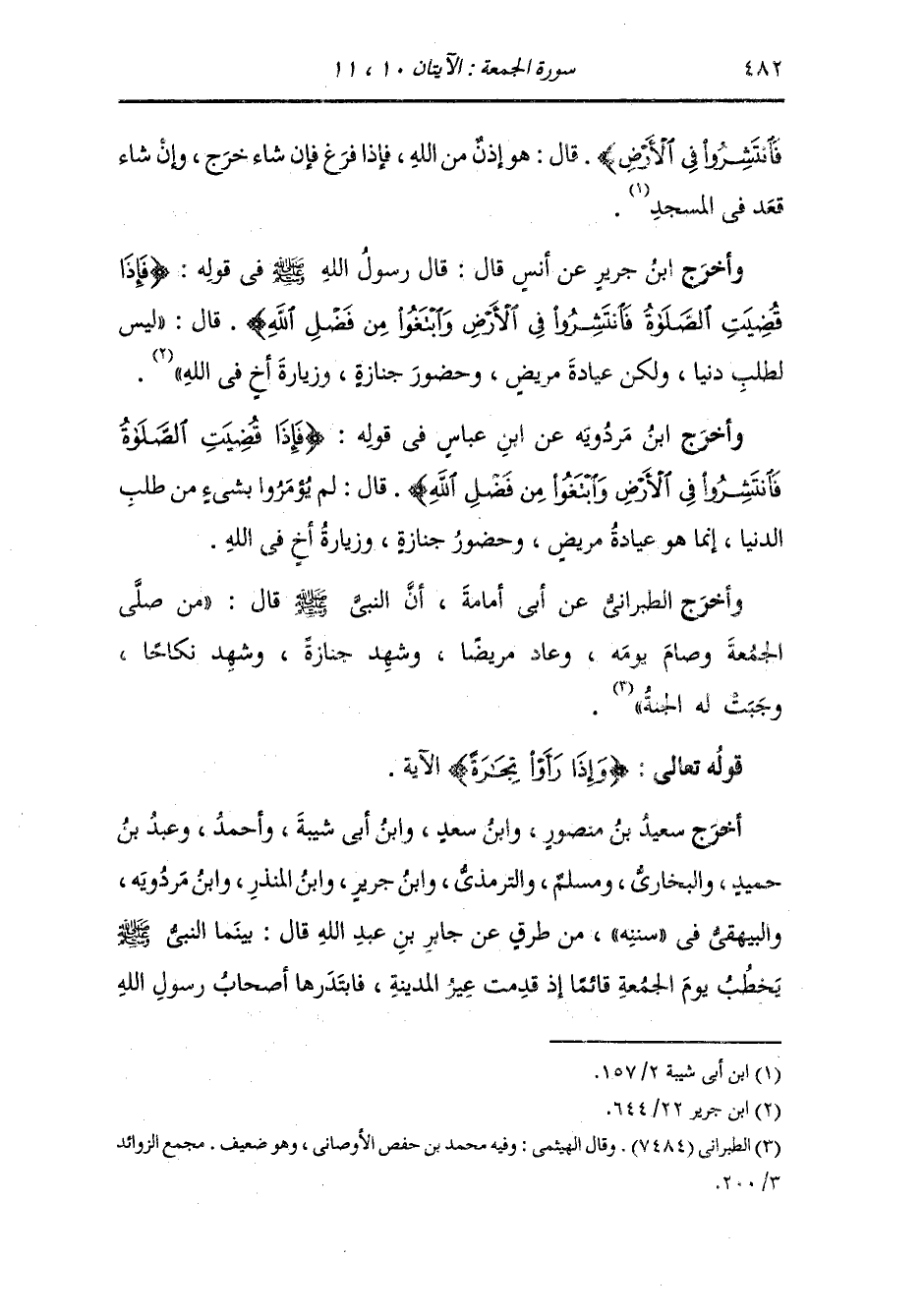 وأخرج البزار عن ابن عباس قال : كان النَّبِيّ صلى الله عليه وسلم يخطب يوم الجمعة فقدم دحية بن خليفة يبيع سلعة له فما بقي في المسجد أحد إلا نفر والنبي صلى الله عليه وسلم قائم فأنزل الله {وإذا رأوا تجارة أو لهوا انفضوا إليها} الآية.