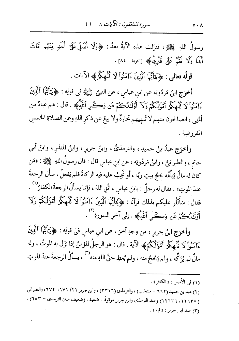 وأخرج عَبد بن حُمَيد ، وَابن المنذر عن الضحاك في قوله : {لا تلهكم أموالكم ولا أولادكم عن ذكر الله} قال : عن الصلوات الخمس وفي قوله : {وأنفقوا من ما رزقناكم} قال : يعني الزكاة والنفقة في الحج.