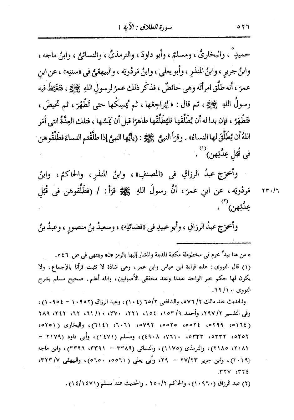 وأخرج عبد الرزاق ، وعَبد بن حُمَيد ، وَابن المنذر والطبراني والبيهقي ، وَابن مردويه عن ابن مسعود قال : من أراد أن يطلق للسنة كما أمره