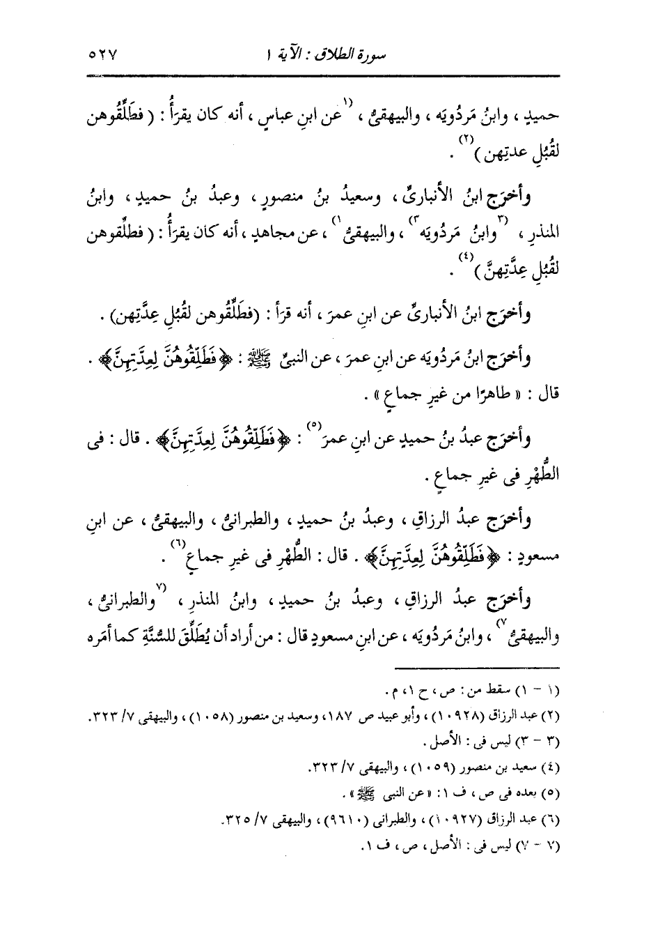 وأخرج سعيد بن منصور ، وعَبد بن حُمَيد ، وَابن جَرِير ، وَابن المنذر ، وَابن أبي حاتم ، وَابن مردويه من طرق عن ابن عباس رضي الله عنهما في قوله : {فطلقوهن لعدتهن} قال : طاهرا من غير جماع.