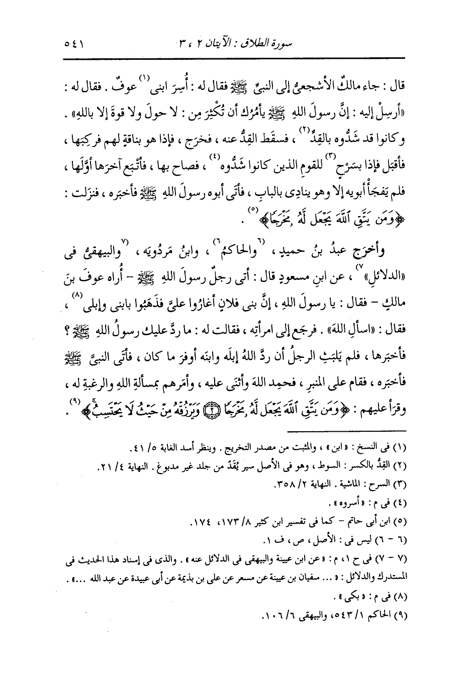 وأخرج أحمد والحاكم وصححه ، وَابن مردويه والبيهقي عن أبي ذر قال : جعل رسول الله صلى الله عليه وسلم يتلو هذه الآية {ومن يتق الله يجعل له مخرجا ويرزقه من حيث لا يحتسب} فجعل يرددها حتى نعست ثم قال : يا أبا ذر لو أن الناس كلهم بها لكفتهم.
