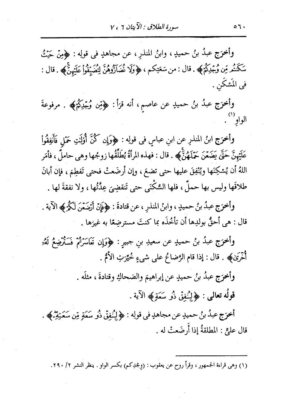وأخرج ابن المنذر عن ابن جريج في قوله : {ومن قدر عليه رزقه} قال : قتر {فلينفق مما آتاه الله} قال : أعطاه {لا يكلف الله نفسا إلا ما آتاها} قال : أعطاها.