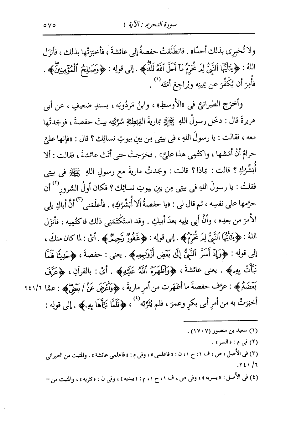 وأخرج الطبراني ، وَابن مردويه عن ابن عباس في قوله : {وإذ أسر النَّبِيّ إلى بعض أزواجه حديثا} قال : دخلت حفصة على النَّبِيّ صلى الله عليه وسلم في بيتها وهو يطأ مارية فقال لها رسول الله صلى الله عليه وسلم : لا تخبري عائشة حتى أبشرك بشارة