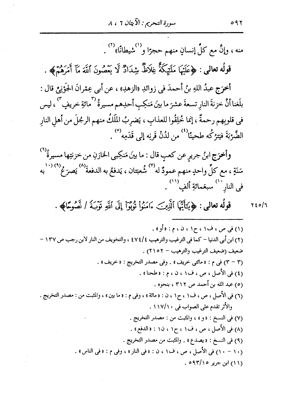 وأخرج ابن أبي شيبة ، وعَبد بن حُمَيد ، وَابن جَرِير ، وَابن المنذر والبيهقي عن ابن مسعود رضي الله عنه في قوله : {توبة نصوحا} قال : التوبة النصوح أن يتوب العبد من الذنب ثم لا يعود إليه أبدا.