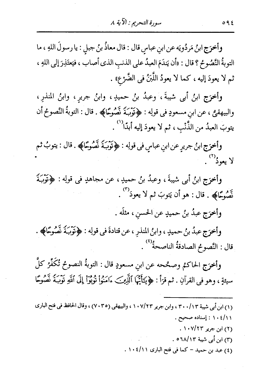 وأخرج عبد الرزاق ، وعَبد بن حُمَيد ، وَابن المنذر عن قتادة رضي الله عنه في قوله : {ضرب الله مثلا} الآية قال : يقول لن يغني صلاح هذين عن هاتين شيئا وامرأة فرعون لم يضرها كفر فرعون والله تعالى أعلم.