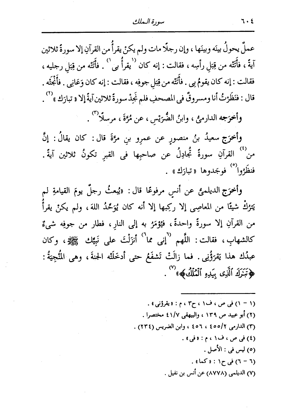 وأخرج أبن مردويه من طريق أبي الصباح عن عبد العزيز عن أبيه قال : قال رسول الله صلى الله عليه وسلم : دخل رجل الجنة بشفاعة سورة من القرآن وما هي إلا ثلاثون آية تنجيه من عذاب القبر {تبارك الذي بيده الملك}.