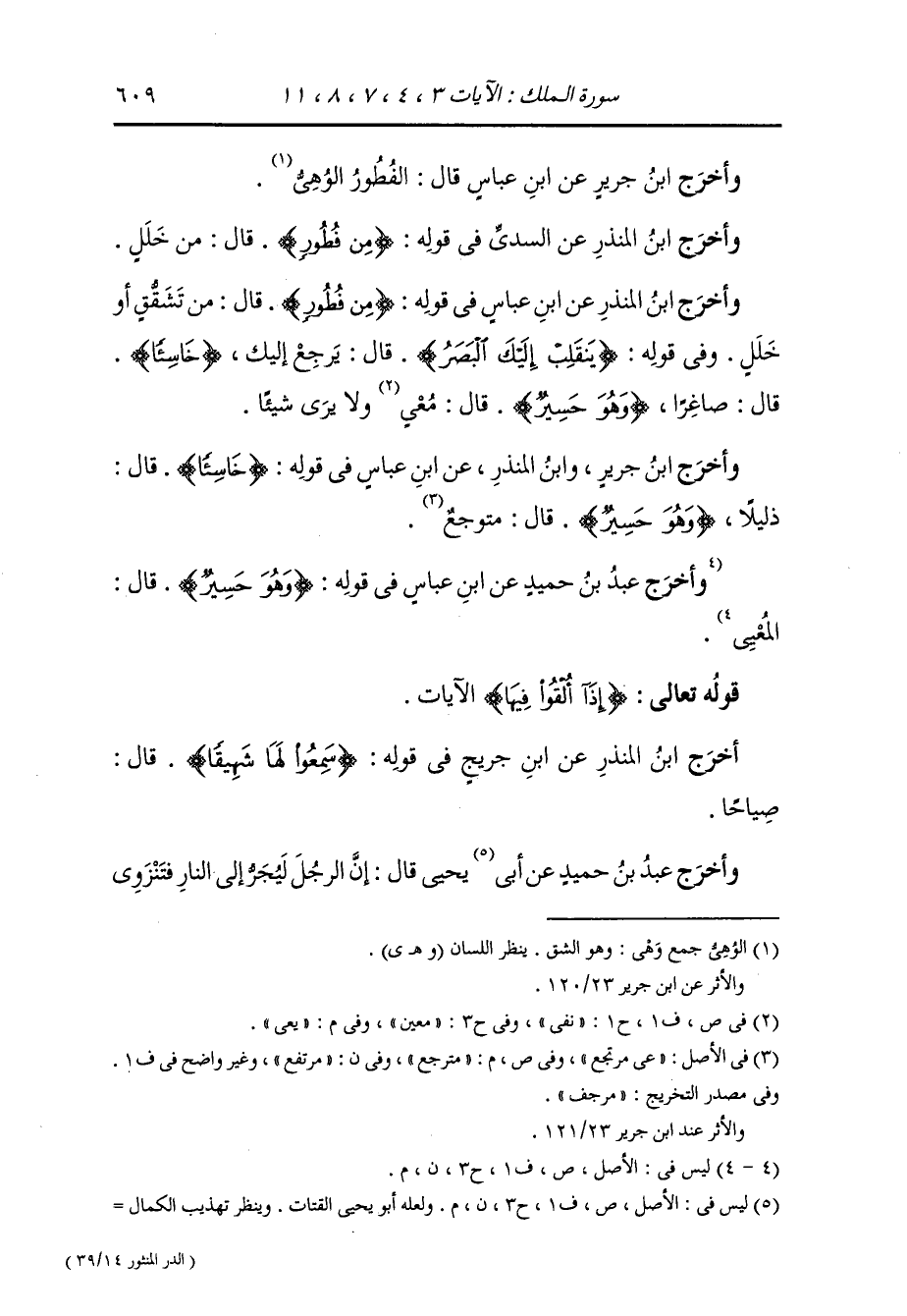وَأخرَج ابن المنذر ، وَابن أبي حاتم عن سعيد بن جبير في قوله : {فسحقا لأصحاب السعير} قال : سحق واد في جهنم ، قوله تعالى : {إن الذين يخشون ربهم بالغيب} الآية.