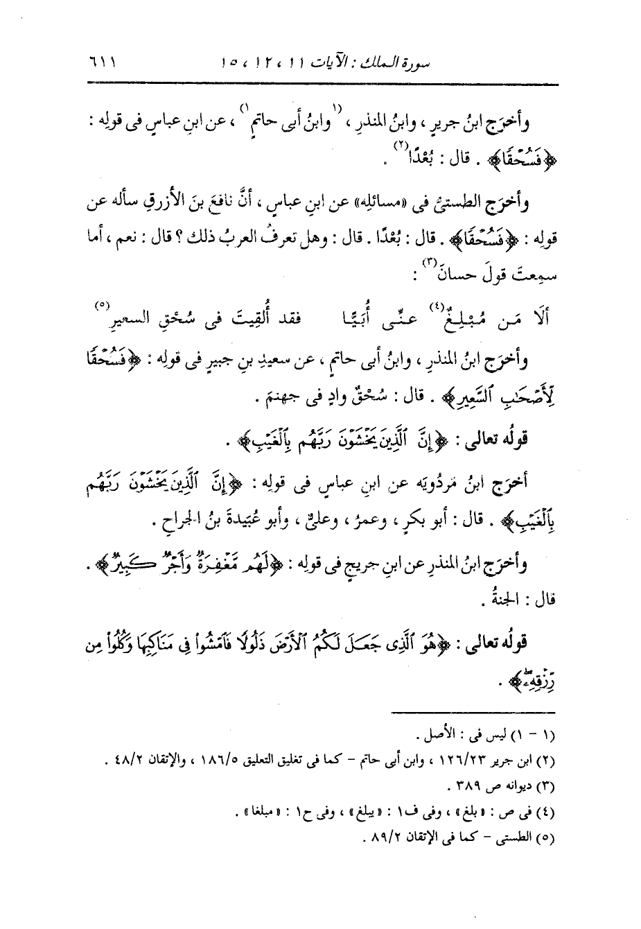 أخرج الفريابي ، وعَبد بن حُمَيد ، وَابن جَرِير ، وَابن المنذر عن مجاهد رضي الله عنه في قوله : {أأمنتم من في السماء} قال : الله تعالى وفي قوله : {فإذا هي تمور} قال : يمور بعضها فوق بعض واستدارتها وفي قوله : {أولم يروا إلى الطير فوقهم صافات} قال : يبسطن أجنحتهن {ويقبضن} قال : يضربن