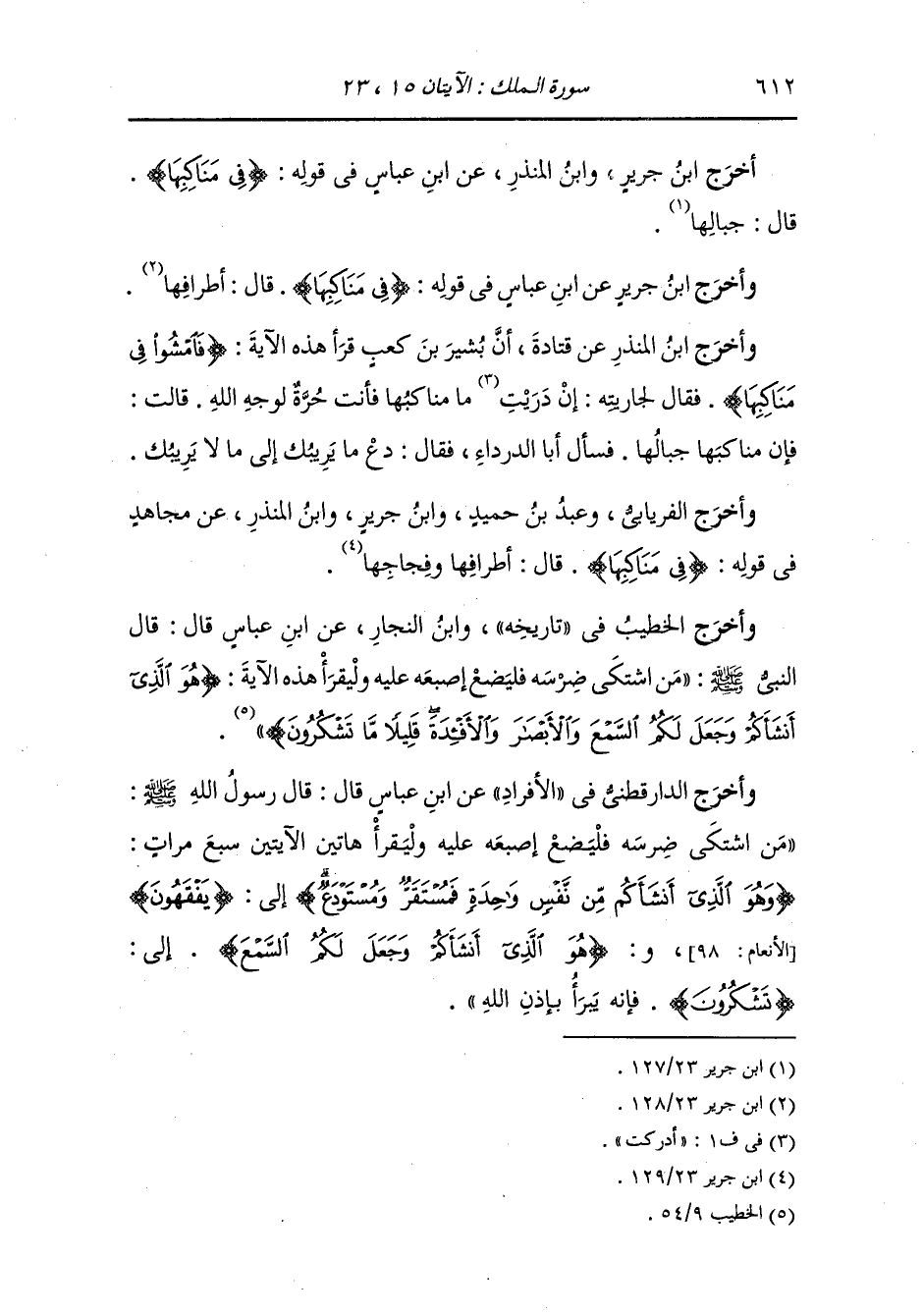 وأخرج عَبد بن حُمَيد ، وَابن جَرِير ، وَابن المنذر عن مجاهد في قوله : {بل لجوا في عتو ونفور} قال : كفور وفي قوله : {أفمن يمشي مكبا على وجهه} قال : في الضلالة {أم من يمشي سويا على صراط مستقيم} قال : على الحق المستقيم.