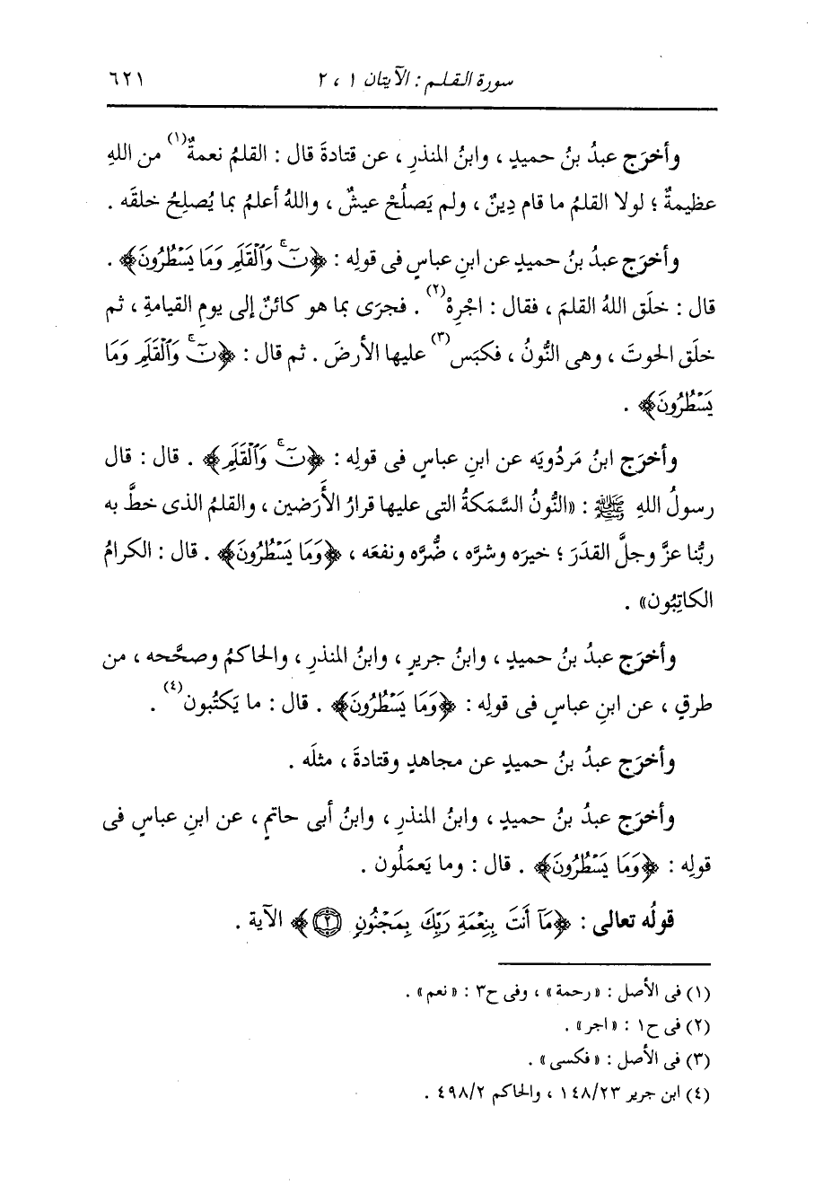وأخرج ابن المنذر عن ابن عباس {وإنك لعلى خلق عظيم} قال : القرآن