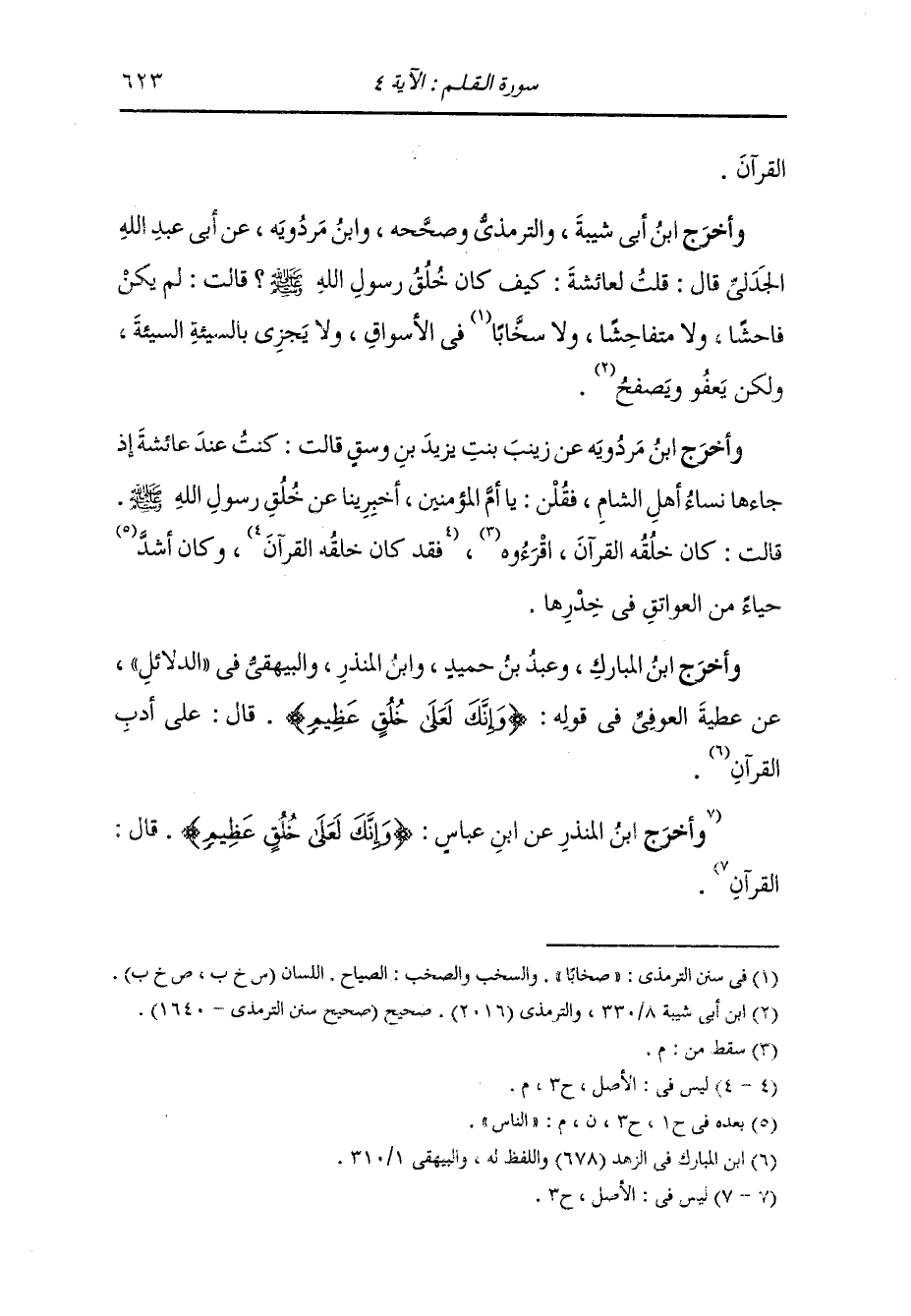 وأخرج ابن سعد عن ميمونة قالت : خرج رسول الله صلى الله عليه وسلم ذات ليلة من عندي فأغلقت دونه الباب فجاء يستفتح الباب فأبيت أن أفتح له فقال : أقسمت عليك إلا فتحت لي فقلت له : تذهب إلى أزواجك في ليلتي قال : ما فعلت ولكن وجدت حقنا من بولي ، قوله تعالى : {فستبصر ويبصرون} الآيات.
