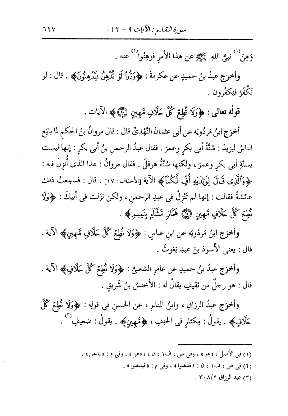 وأخرج عَبد بن حُمَيد عن شهر بن حوشب قال : العتل الصحيح الأكول الشروب والزنيم الفاجر.