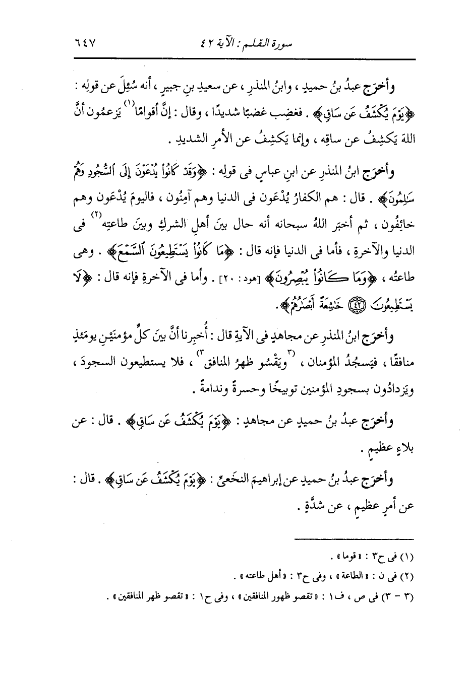 وأخرج البيهقي عن ابن عباس في قوله : {وقد كانوا يدعون إلى السجود} قال : الرجل يسمع الأذان فلا يجيب الصلاة.