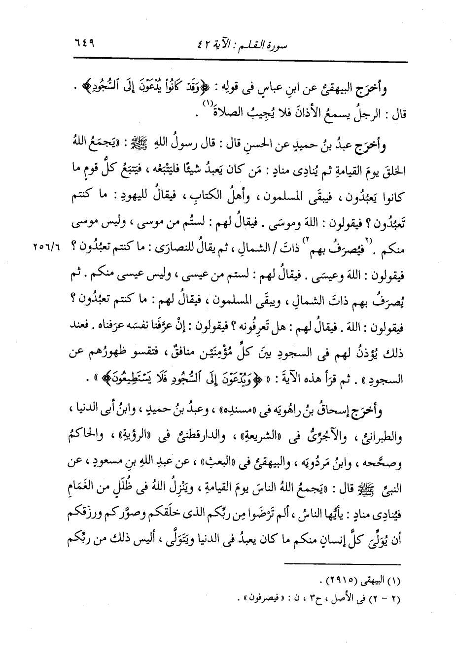كانقضاض الكوكب ومنهم من يمر كالطرف ومنهم من يمر كالريح ومنهم من يمر كشد الرجل ويرمل رملا يمرون على قدر أعمالهم حتى يمرالذي نوره على أبهام قدمه يجر يدا ويعلق يدا ويجر رجلا ويعلق رجلا وتصيب جوانبه النار فيخلصون فإذا خلصوا قالوا : الحمد لله