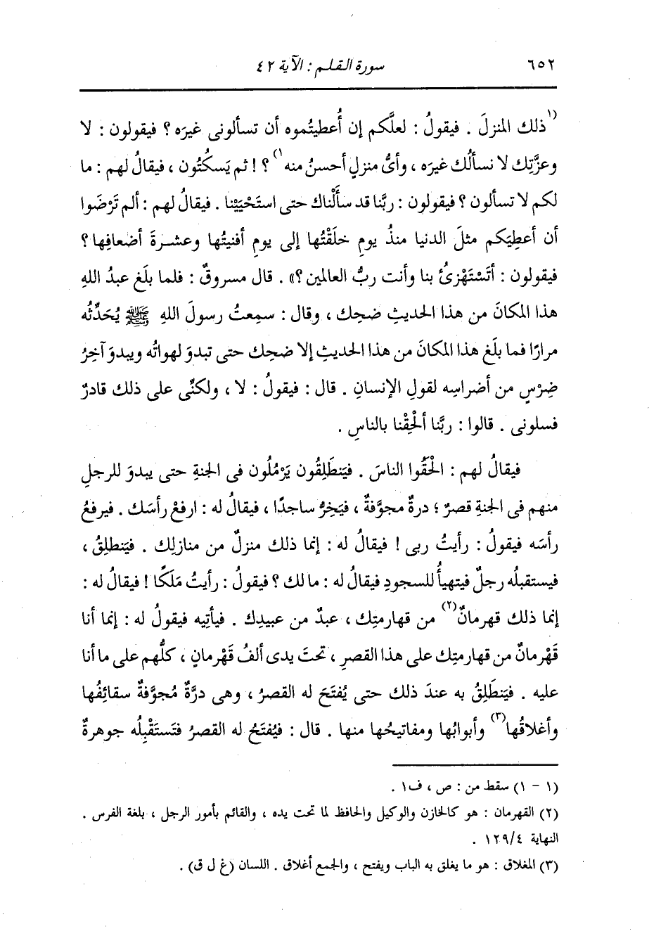 وأخرج ابن أبي شيبة ، وعَبد بن حُمَيد ، وَابن أبي حاتم والطبراني والحاكم وصححه والبيهقي في البعث والنشور عن ابن مسعود أنه ذكر عنده الدجال فقال : يفترق ثلاث فرق تتبعه فرقة تتبعه وفرقة تلحق بأرض آبائها منابت الشيخ وفرقة تأخذ شط الفرات فيقاتلهم ويقاتلونه حتى يجتمع المؤمنون بقرى الشام فيبعثون إليه طليعة فيهم فارس على فرس أشقر أو أبلق فيقتلون لا يرجع إليهم شيء ثم إن المسيح ينزل فيقتله ثم يخرج يأجوج ومأجوج فيموجون في الأرض فيفسدون فيها ثم قرأ عبد الله