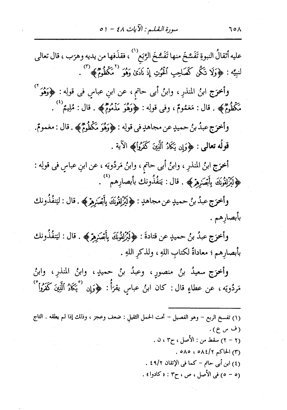 وأخرج ابن مردويه عن ابن الزبير مثله ، واخرج الطبراني عن أبي برزة أن النَّبِيّ صلى الله عليه وسلم كان يقرأ في الفجر بالحاقة ونحوها.