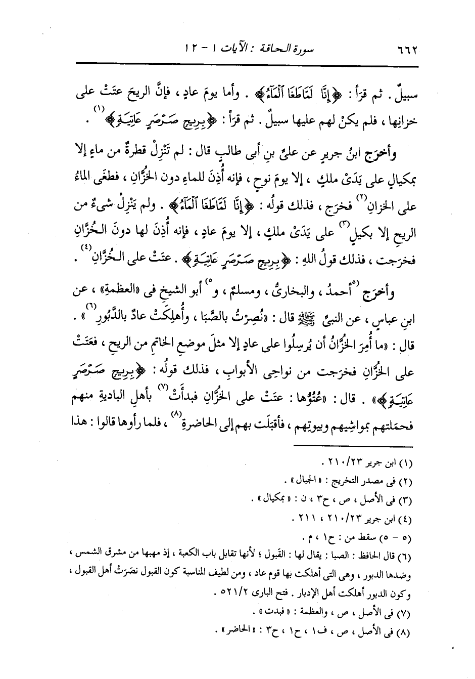 وأخرج عبد الرزاق والفريابي وسعيد بن منصور ، وعَبد بن حُمَيد ، وَابن جَرِير ، وَابن المنذر والطبراني والحاكم وصححه عن ابن مسعود في قوله : {حسوما} قال : متتابعات.