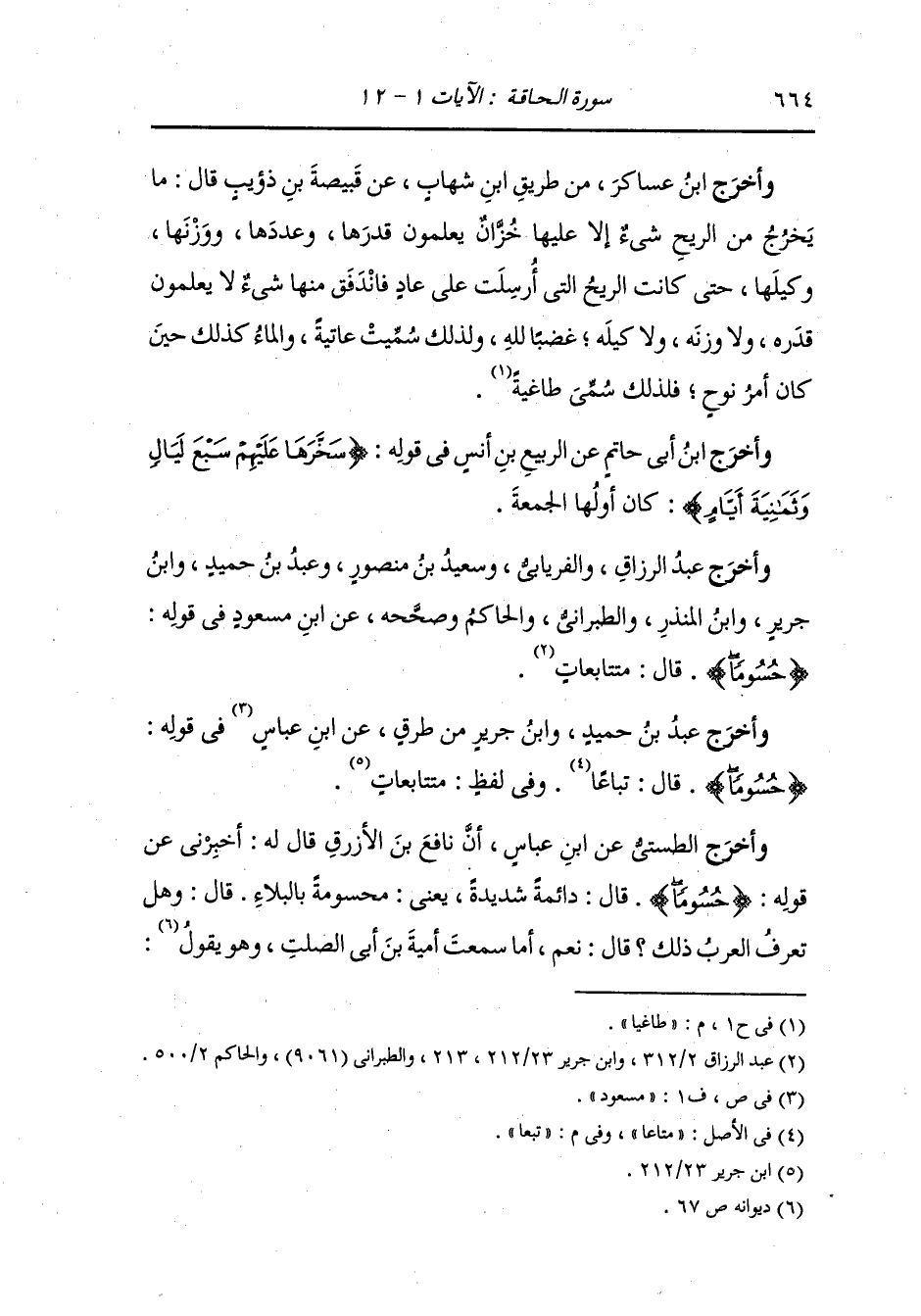 وأخرج عَبد بن حُمَيد ، وَابن المنذر عن مجاهد في قوله : {بالخاطئة} قال : بالخطايا وفي قوله : {أخذة رابية} قال : شديدة وفي قوله : {إنا لما طغى الماء} قال : كثر وفي قوله : {حملناكم في الجارية} قال : السفينة وفي قوله : {وتعيها أذن واعية} قال : حافظة وفي لفظ : سامعة.