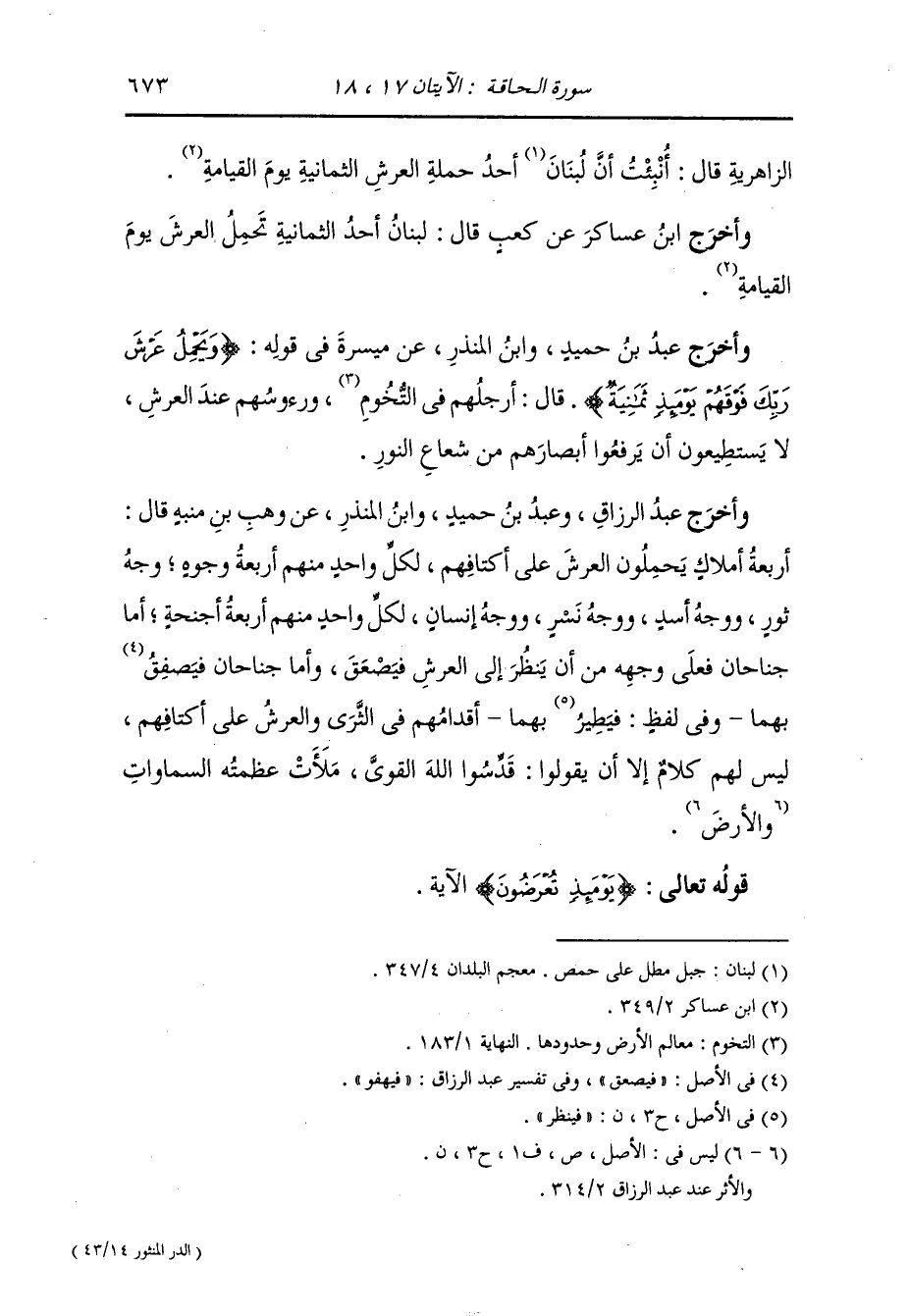 وأخرج ابن جرير والبيهقي في البعث عن ابن مسعد قال : يعرض الناس يوم القيامة ثلاث عرضات فأما عرضتان فجدال ومعاذير وأما العرضة الثالثة فتطاير الكتب بالأيمان والشمائل.