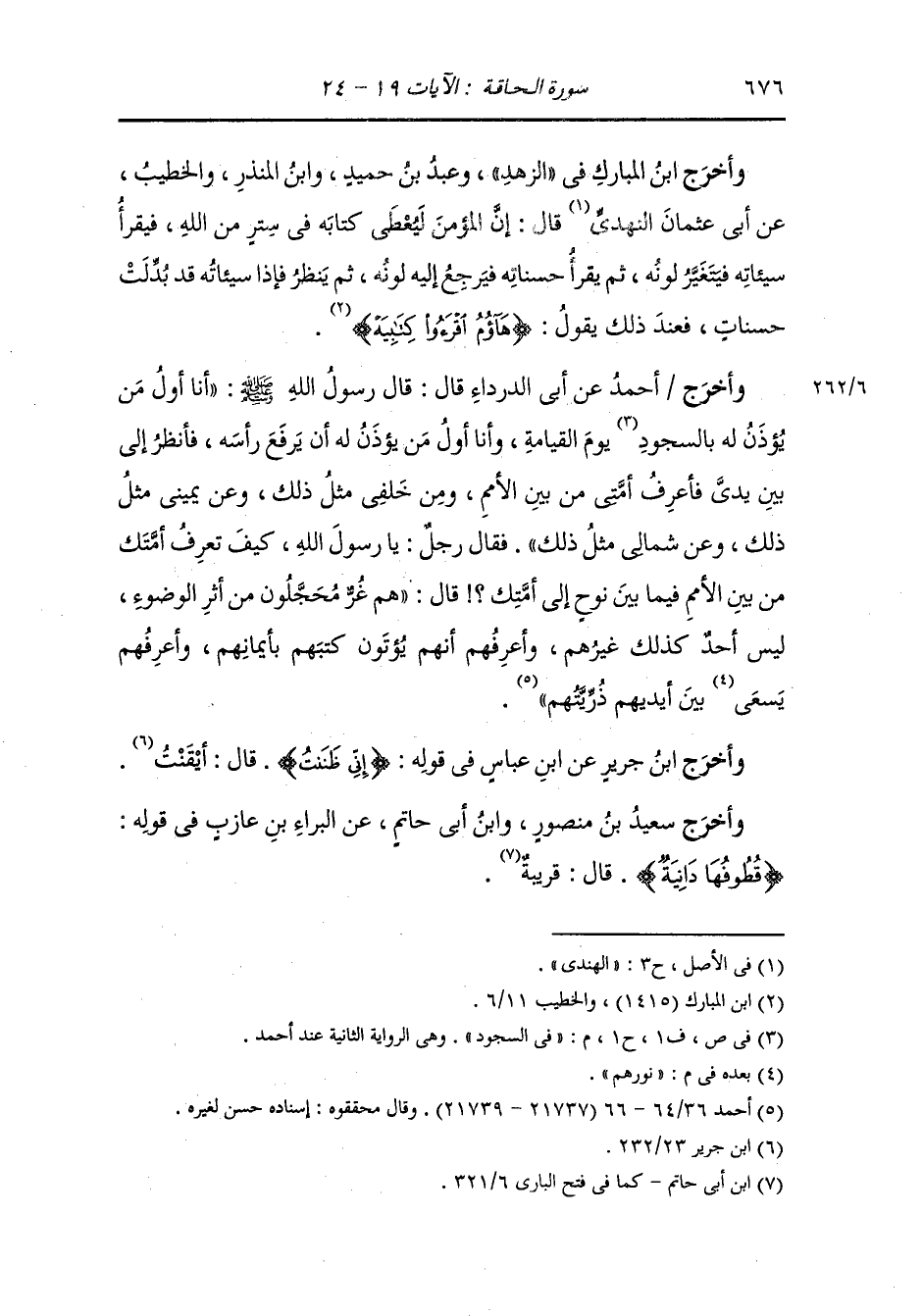 وأخرج ابن المنذر ، وَابن عدي في الكامل والبيهقي في شعب الإيمان عن عبد الله بن رفيع في قوله : {بما أسلفتم في الأيام الخالية} قال : الصوم.