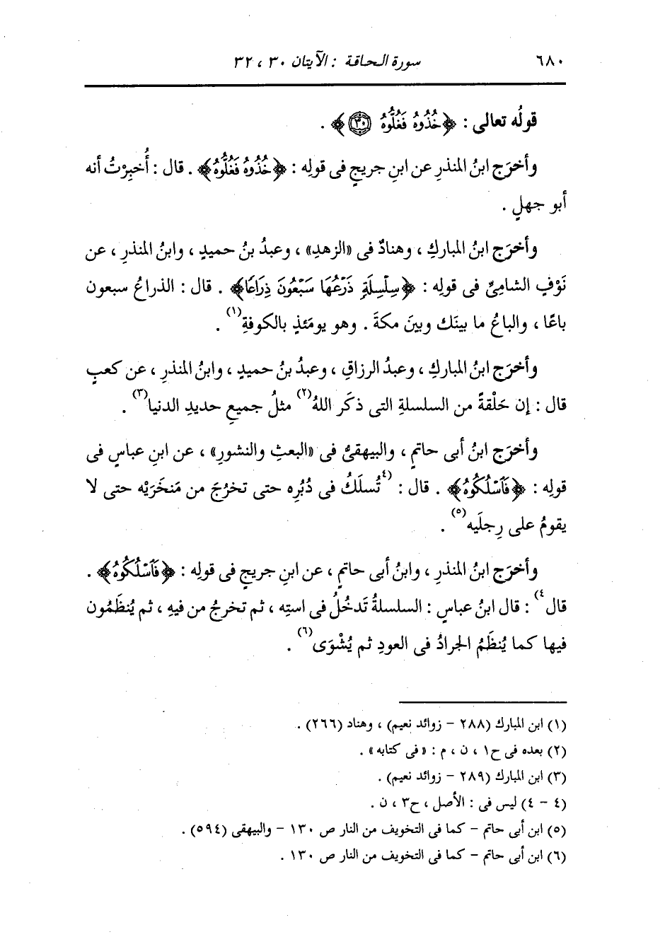وأخرج ابن المنذر من طريق ابن جريج عن ابن عباس قال : الغسلين اسم طعام من أطعمة النار.