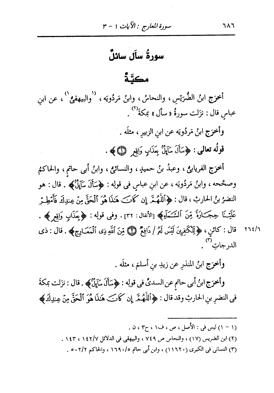 وأخرج عَبد بن حُمَيد ، وَابن المنذر عن ابن عباس في قوله : {سأل سائل} قال : سأل واد في جهنم.